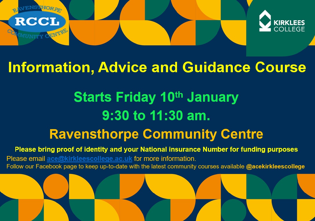 Information, Advice and Guidance Course held at RCC on Fridays 9.30-11.30am.
